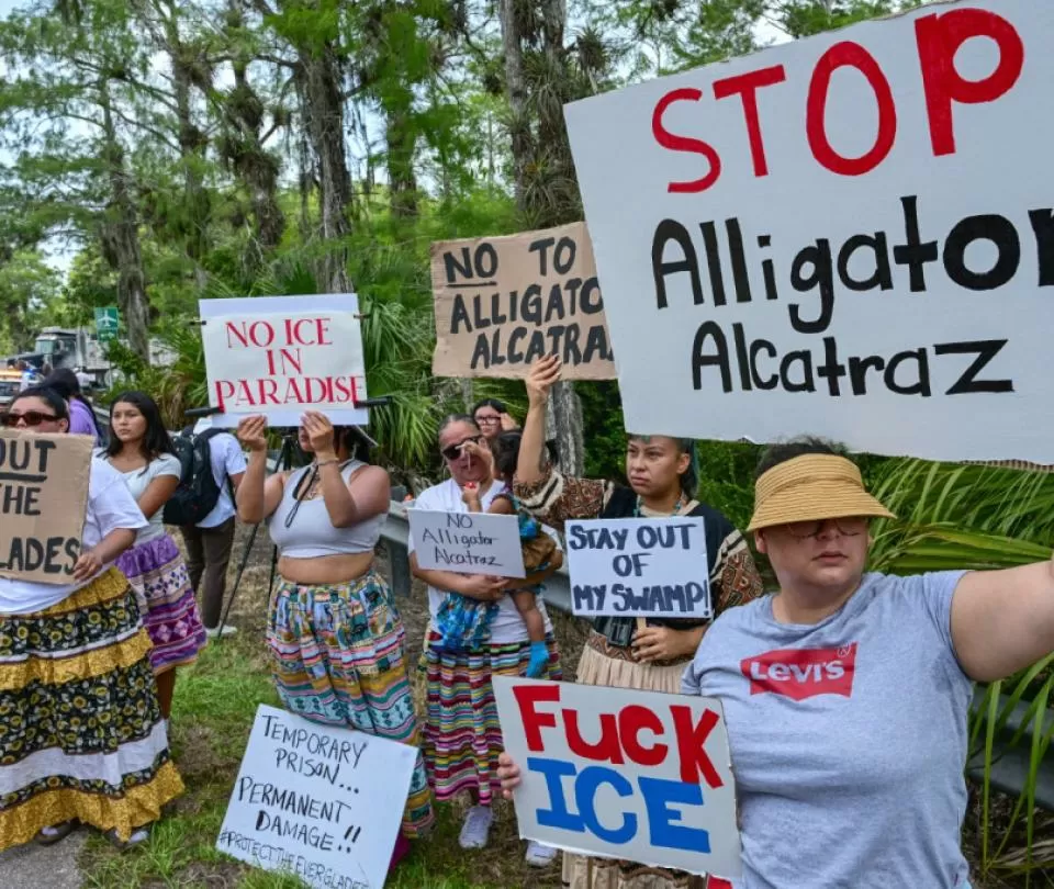 El rechazo a ‘Alligator Alcatraz’ ha sido liderado por organizaciones de derechos humanos y activistas locales, quienes han llevado a cabo manifestaciones y campañas para informar a la población sobre las consecuencias de esta cárcel migratoria. También han presentado demandas legales para abortar su construcción.