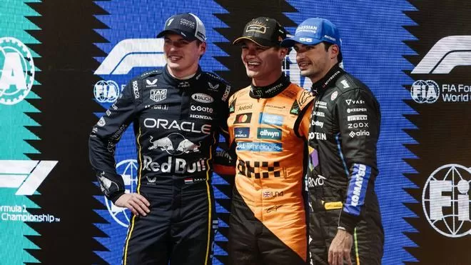 El líder del Mundial, Lando Norris, se llevó la pole position en una clasificación marcada por el caos y la incertidumbre. Max Verstappen, uno de los favoritos de la temporada, ocupará la segunda posición en la parrilla, seguido por el brillante Carlos Sainz en tercera posición.
