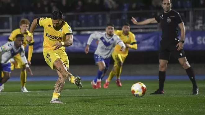 Un penalti muy protestado cambió el rumbo del partido. En el minuto 63, el lateral Escoruela cuelga un balón, lo prolonga Campeny y Unai Ropero sigue la marca de Jordi Caquia. El extremo quia llega a impactar bien con el balón, con el jugador